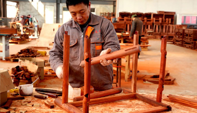 流程二木工工序 板材干燥完成后,就可以進(jìn)入正式的制作工序了。這一步是紅木家具制作最主要的步驟,也就是紅木家具制作廠(chǎng)家所說(shuō)的木工工序。