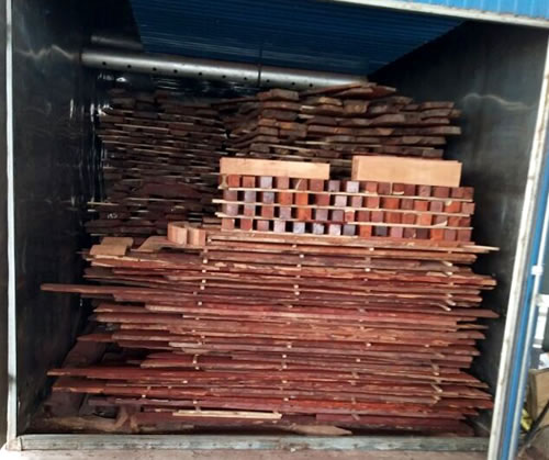 2、干燥一般分兩階段進(jìn)行,首先進(jìn)行預(yù)干,預(yù)干一般采用自然氣干,放在院內(nèi)通過空氣流動和水分蒸發(fā)來達(dá)到氣干的目的,使紅木的含水率降低到20%—30%之間。氣干之后,再放入專門的紅木干燥設(shè)備內(nèi)進(jìn)行干燥處理,要求干燥至水分含量在 8%—12%間。